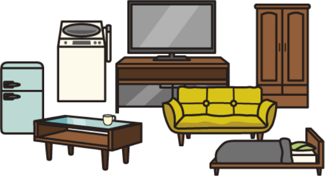 テレビ / 冷蔵庫 / 洗濯機 / エアコン / オイルヒーター / プリンター / モニター / 掃除機 / 扇風機 / ストーブ / 加湿器 / 除湿機 / 電子レンジ / パソコンなど