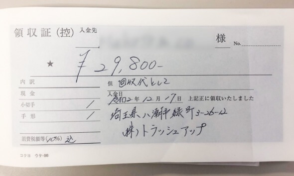 この回収内容であればトラッシュアップでは29,800円で回収致します。