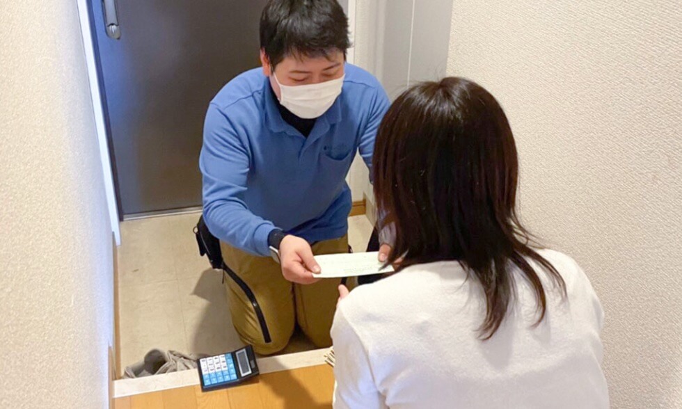 作業が終了した後に、お客様にお部屋の最終確認をして頂きます。ご納得頂けましたら現金でのご精算をして頂き、全ての作業は終了となります。