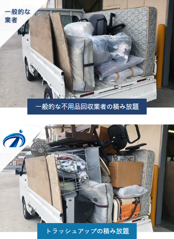- 一般的な業者と比べ多く積めるタイプのトラックを使用
