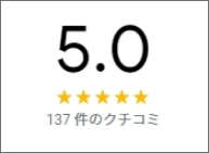 改ざんが難しく信頼性の高いとされているGoogleクチコミにて星5を達成!(2022年11月現在)